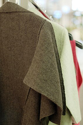 今回もウールを織った布をフェルティングしたジャケットやベスト、マフラー・バッグなどたくさん届きました。