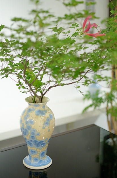 結晶釉と呼ばれる大変美しい釉薬を用いた作品で見る人を魅了します。