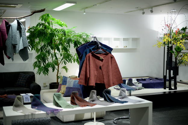 手織りのマフラーをはじめ、織った布をフェルティングして