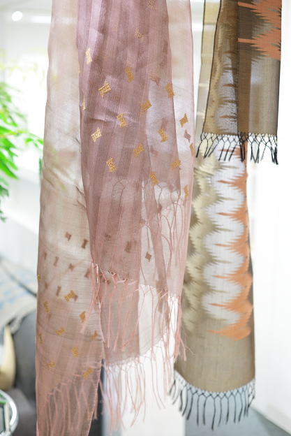 高い織りの技術を必要とするラオスシルクのとても美しい風合い。