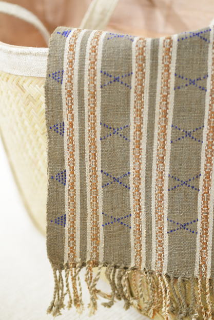 ビーズを織り込んだ地機織。ラオス南部カトゥ族によるもの。