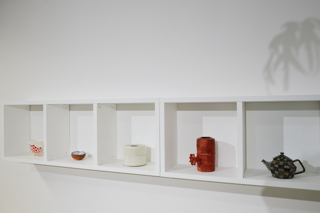 磁土を胎に異なる性質を持つ素材や手法をひとつの作品の中で表現し静かで冷たく、