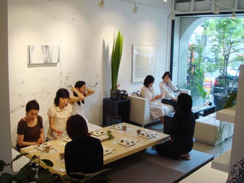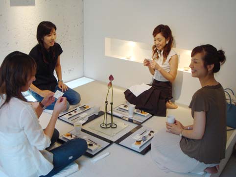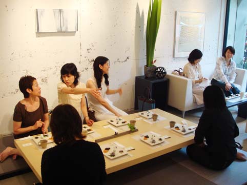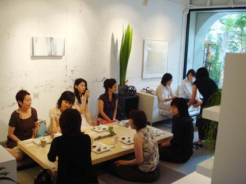 テーブルコーディネートレッスン 専攻Uクラスの今年のテーマは 「パーティープロデュース」です。7月は、生徒さんたちが「夏のお茶会」をテーマに 他のクラスの生徒さんたちを招いて、お茶とお菓子とコーディートでのおもてなしをしました。