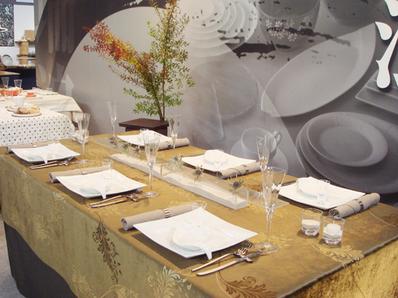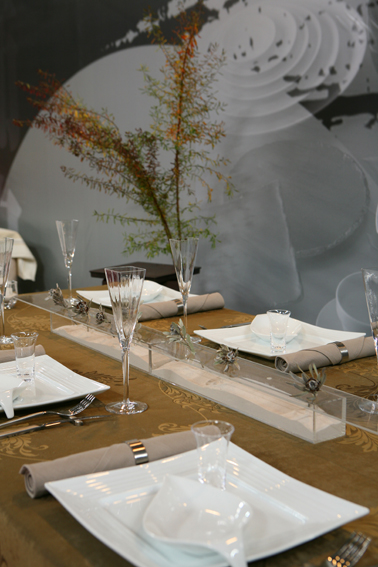 テーブルセッティングでも複合イメージの調和や異素材の融合を。