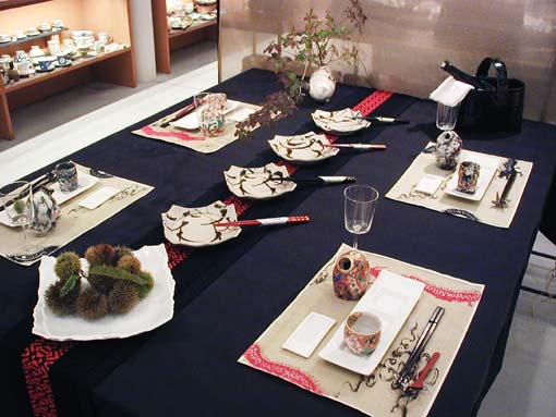 2005年8月〜2006年3月まで、多治見市「市の倉さかずき美術館」にて、 クロウスの会の会員が、1ヶ月ずつ交代で、ミュージアムショップの商品を 使ってテーブル展示を行うイベントを行っています。 毎月季節に合わせたテーブルコーディネートをしていますので、ぜひお出かけ下さい。